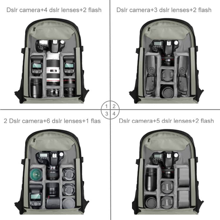 - Capacidad para cámara digital, objetivo, uno o dos objetivos adicionales y accesorios como flash.