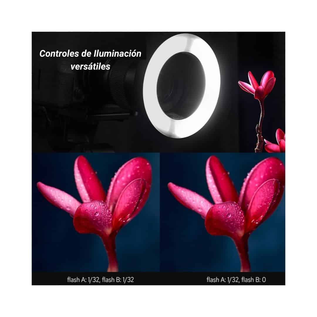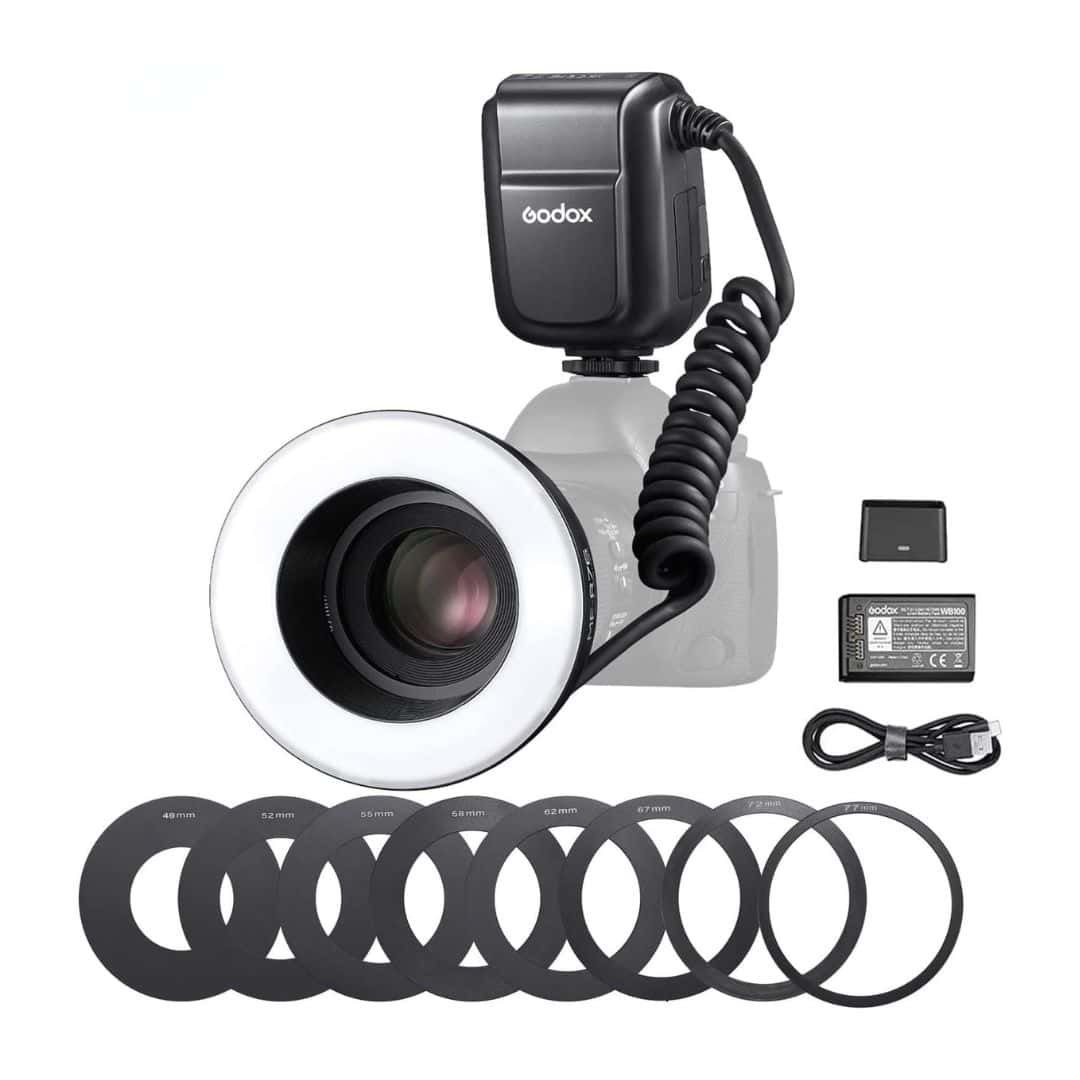 El Flash Macro Godox MF-R76, con su diseño en forma de anillo y un cabezal de flash que se conecta directamente a la parte frontal de una lente, proporciona iluminación sin estorbar ni proyectar sombras intensas, lo que se considera una opción ideal para que los fotógrafos obtengan imágenes de cerca. Se puede rodar tanto en exteriores como en estudio.