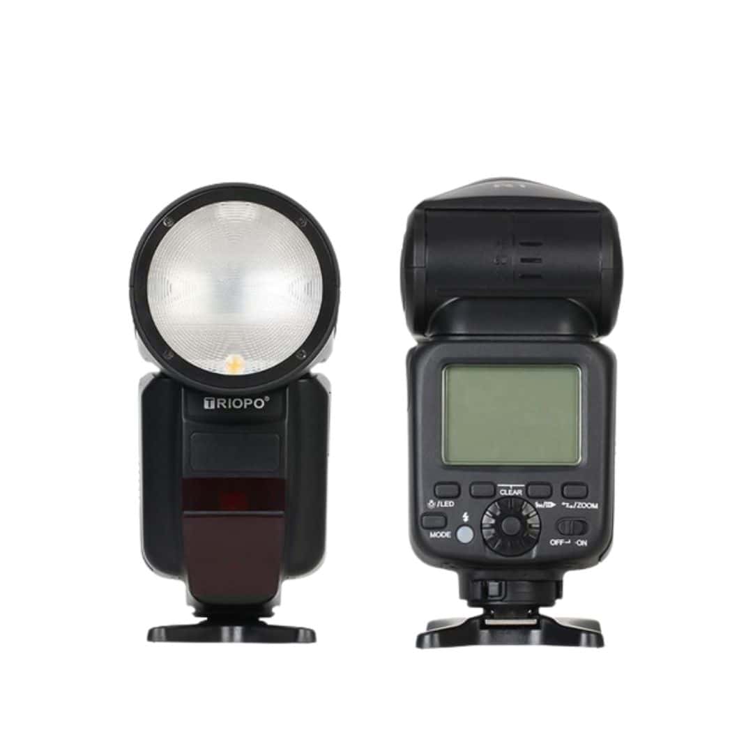 Flash Triopo R1 Cabeza Redonda TTL Para Canon o Nikon (Cada flash es compatible 100% con AMBAS marcas, un mismo flash te sirve para una cámara Canon y a la vez para una cámara Nikon).