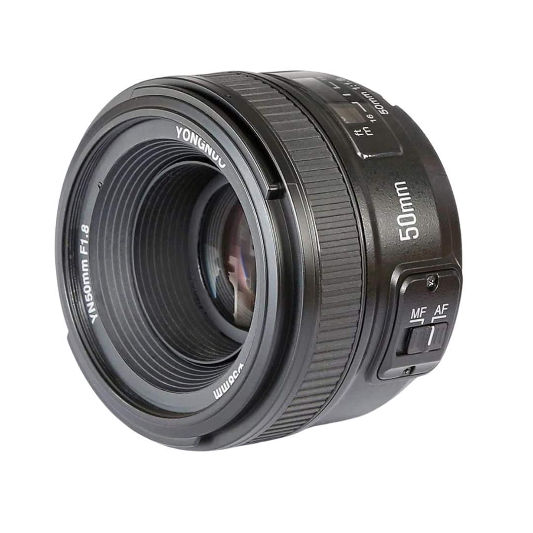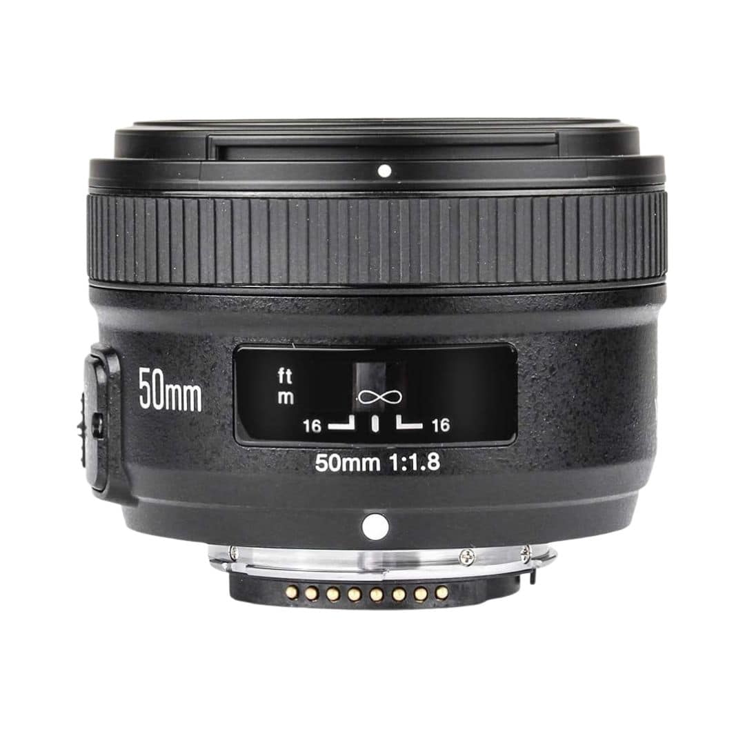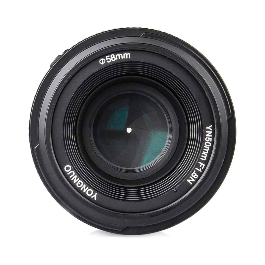Objetivo Yongnuo 50mm F1.8 para Nikon, lente de gran apertura ideal para retratos y fotografía con poca luz. Proporciona un enfoque nítido y un hermoso efecto bokeh, compatible con cámaras Nikon de montura F.