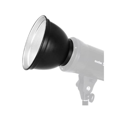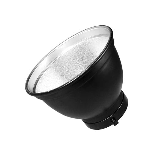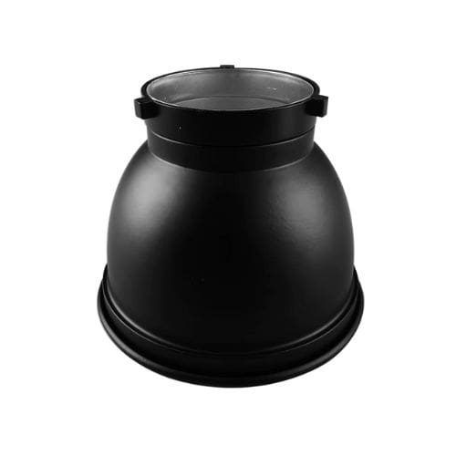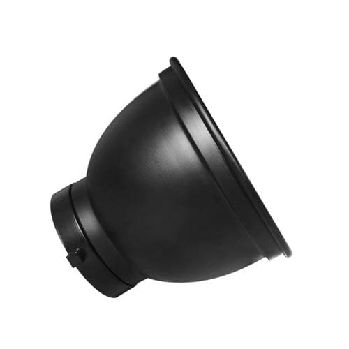 Reflector estándar de 18×13 cm con montura Bowens, diseñado para concentrar la luz y mejorar el control de la iluminación en estudios fotográficos.