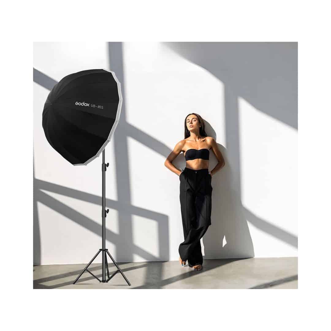 EL Softbox Godox UB-85S, el nuevo paraguas parabólicos de Godox te ayuda a crear la forma de luz definitiva. Versátiles y portátiles, los paraguas parabólicos generan una fuente infinita de expresión artística, los paraguas parabólicos permiten un control directo sobre el contraste, la saturación y la graduación de los bordes de las sombras del sujeto.