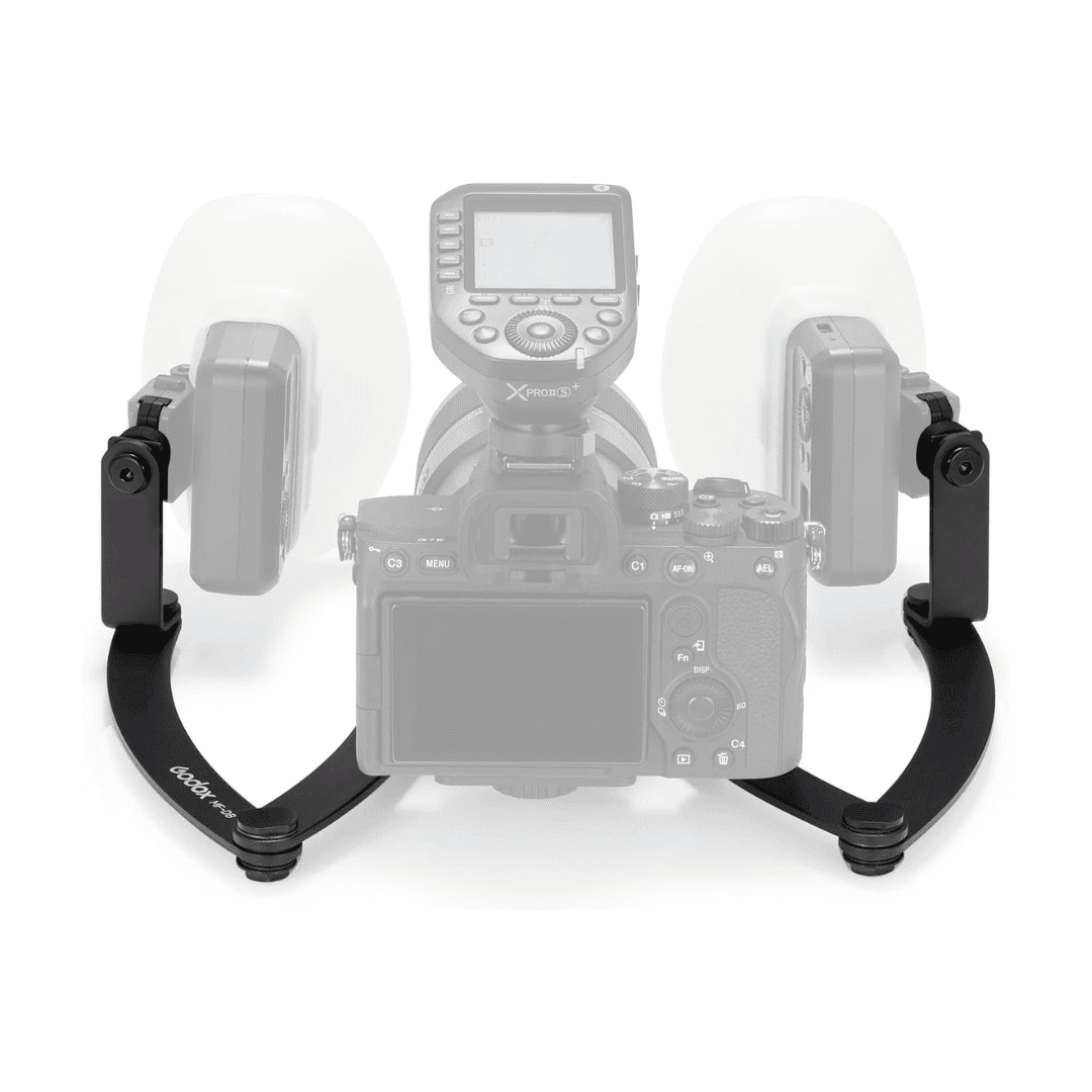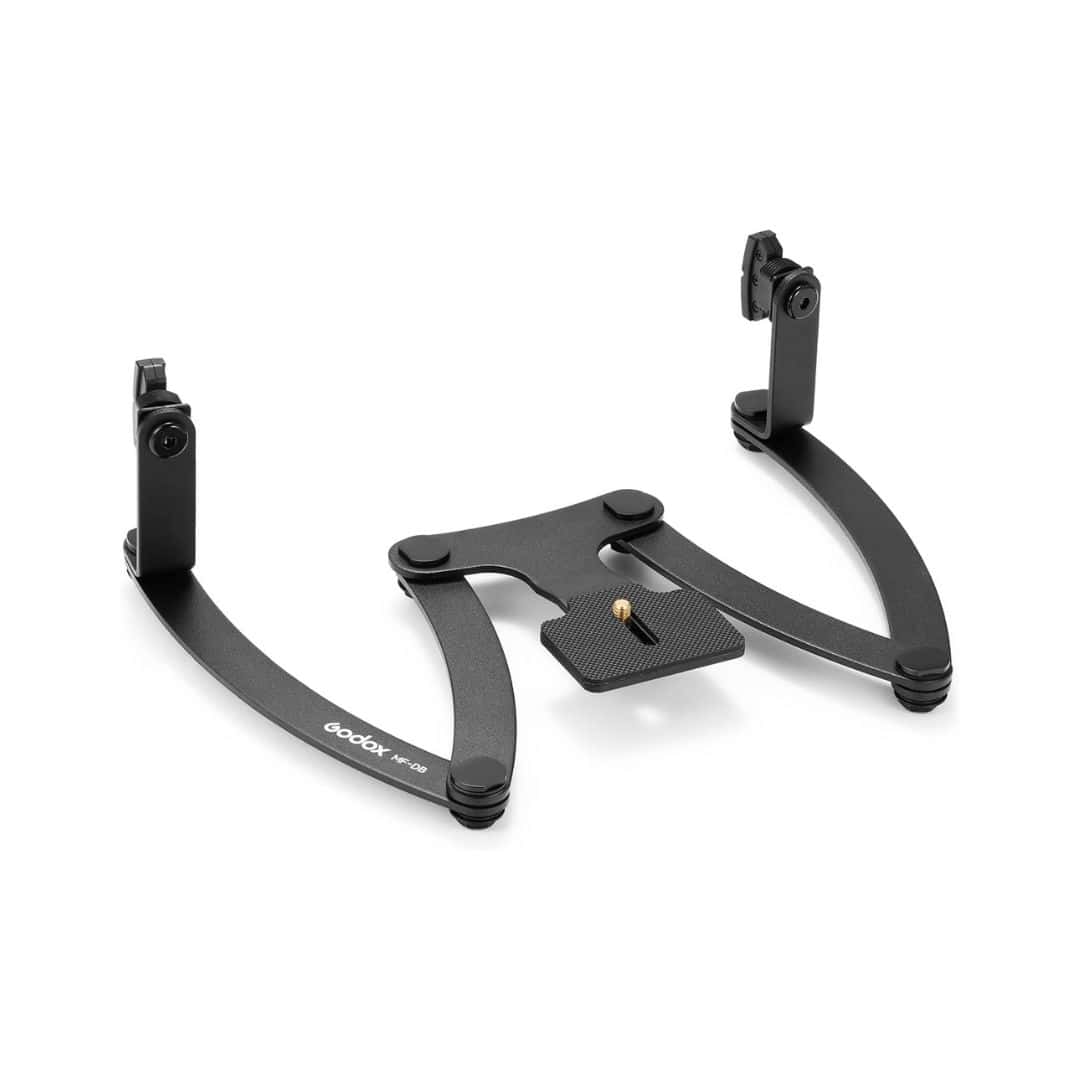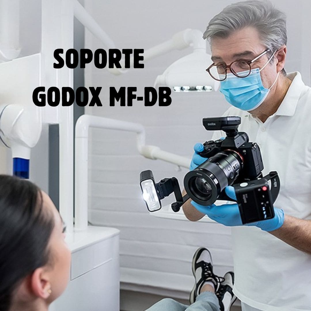 Soporte Godox MF-DB, diseñado para montar flashes y accesorios macro, ofreciendo estabilidad y precisión en fotografía de primer plano. Compatible con la serie de flashes macro Godox.